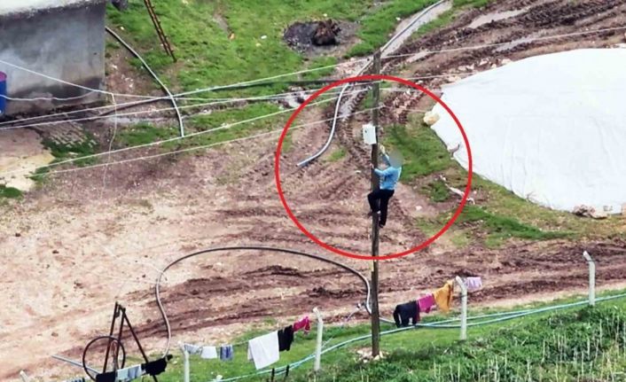 Dron kamerasına anlık olarak yansıyan olayda, dronla yapılan kaçak elektrik denetimi yapıldığını fark eden bir şahsın, hızlıca kaçak elektrik hattının bağlı olduğu elektrik direğine tırmandığı görüldü. Drona yansıyan görüntülerde şansın, kaçak elektrik amacıyla kullanılan hatları bağlantı noktalarında ayırdığı ve kaçak elektrik için kullanılan kabloları da bir eve teslim ettiği tespit edildi.