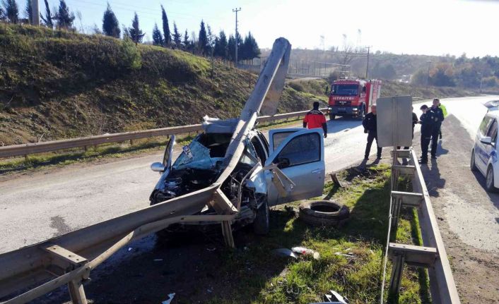Sakarya’nın Adapazarı ilçesinde D020 duble karayolunda sürücüsünün kontrolünden çıkan otomobil bariyerlere adeta ok gibi saplandı. Aracın hurdaya döndüğü kazada sürücü yaralandı.