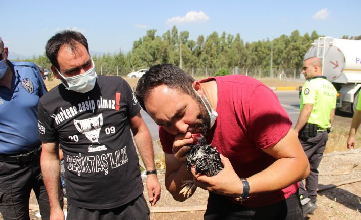 Öte yandan meydana gelen yangında fabrika bahçesinde bulunan tavuk ve horozlar da dumandan etkilendi. Hayvanları fabrikanın dışına çıkaran vatandaşlar ve yangın sebebiyle trafikte kontrolü sağlayan trafik polisleri, dumandan etkilenen hayvanlara müdahale etti. 5 tavuk ve bir horoz, trafik polisleri ve vatandaşların suni teneffüs ve kalp masajları sayesinde yeniden hayata tutundu. Telef olmak üzere olan bir pilice kalp masajı yapan trafik polisi de hayvanın başından bir an olsun ayrılmadı.