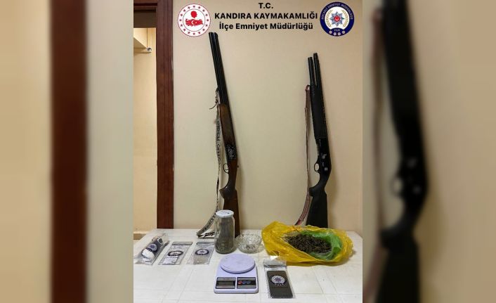 Kocaeli’de polis ekiplerinin yaptığı denetimler neticesinde şüpheli bulunan bir araç durdurulmak istendi. ‘Dur’ ihtarına uymayan araç sürücüsü, kovalamaca neticesinde yakalandı. R.O. isimli sürücü ve araçta yapılan aramada 1.78 gram matamfetamin ve 4.20 gram bonzai ele geçirildi. Malzemelere el koyulurken uyuşturucu maddeleri temin ettiği tespit edilen U.B. isimli şahsın ikametinde arama yapıldı. Yapılan aramada 2 yivsiz av tüfeği, hassas terazi, kilit mekanizmasına sahip şeffaf poşetler, 218,07 gram esrar ve esrar tohumu ele geçirildi.