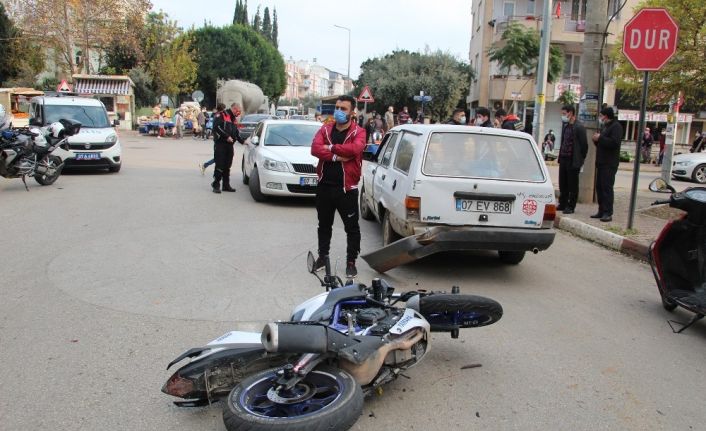 Antalya’da polisin ‘dur’ ihtarına uymayan motosiklet sürücüsü, kısa süreli kovalamacanın ardından kırmızı ışıkta bekleyen bir otomobile çarparak yakayı ele verdi.
