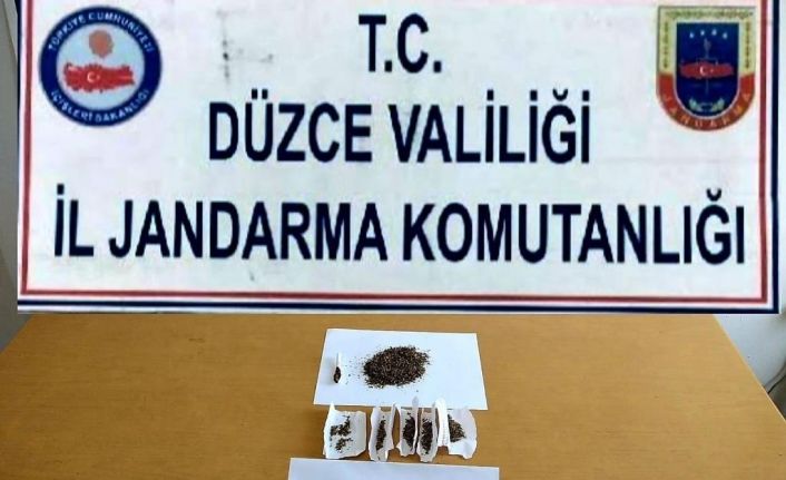 DÜZCE(İHA) – Düzce İl Jandarma Alay Komutanlığına bağlı ekipler yol kontrolünde durdurdukları motosiklet sürücüsünün üzerinden ve motosikletinden 14 gram bonzai ele geçirildi.