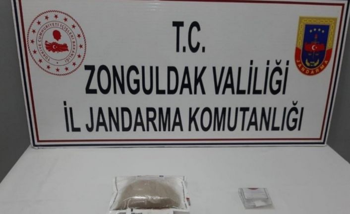 Zonguldak’ta jandarma ekiplerinin durdurduğu otobüsteki yolcunun üzerinden uyuşturucu madde çıktı.