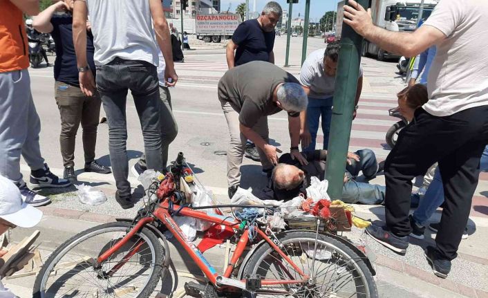 Bursa’da ehliyetine el konulan otomobil sürücüsü önce bisiklete sonra motora çarptı. Otomobil sürücüsü kazanın şokuyla önce kaçtı, sonra geri geldi. Çarpanın etkisiyle yola savrulan bisikletli ve motorlu sürücü yerde kıvranırken, biri sigara içti diğeri ise yerde acı içinde vatandaşlardan tabanca istedi.