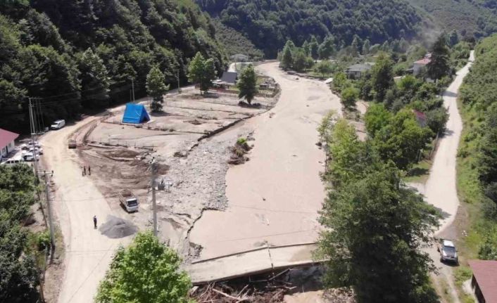 Düzce’de hafta sonu etkili olan sağanak yağış, derelerin taşmasına sebep oldu. Aksu Çayı taşınca köyde 4 ev, 5 ahır sel sularına kapılarak yıkıldı. 15 ev de hasar oluşurken, köyde hasar tespit çalışmaları devam ediyor. Köy yollarınca onlarca heyelan meydana gelirken, bazı evlere bugün ulaşılabildi. 2 ana köprü yıkılırken, yollardaki tahribat ekiplerce giderilmeye çalışılıyor.