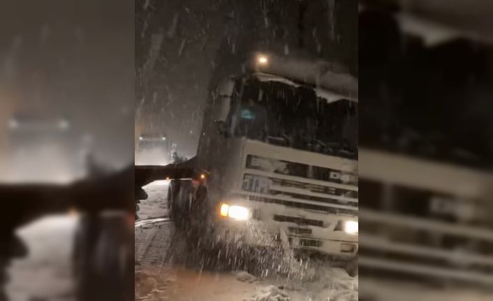 D-655 karayolu Kabalak mevkiinde yolda kalan araçlara müdahale etmek için bölgeye giden bir çekici kara saplandı. Kardan aracın çıkartılması için bölgede ki vatandaşlar müdahalede bulundu. O anlar cep telefonu kamerasına yansıdı.