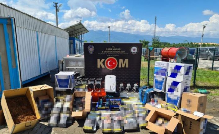 Düzce’de KOM ekipleri tarafından bir ikamet ve müştemilatında yapılan aramada binlerce makaron ve kaçak sigara yapımında kullanılan malzemeler ele geçirildi.