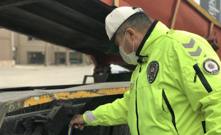 Düzce İl Emniyet Müdürlüğü Bölge trafik ve Trafik Tescil Denetleme Şube Müdürlüğüne bağlı ekipler, 1 Aralık’ta başlayan ticari ve yolcu taşımacılığında kullanılan araçlarda zorunlu kış lastiği uygulaması ile ilgili olarak D-100 karayolu üzerinde ticari araçlarda ’kış lastiği’ denetimi yaptı. Tek tek durdurulan ti cari araçların lastikleri ekipler tarafından kontrol edildi. Lastik derinlik ölçme kumpası ile yapılan ölçümlerde lastik derinliği 1.6 milimetrenin altında kalan araç sürücülerine 776 lira idari para cezası kesildi. Ekipler kurala uymayan sürücülere cezai işlem uygularken, araçlarına kış lastiği takan sürücülere teşekkür etti.