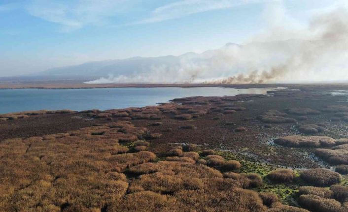 Afyonkarahisa’da geçen yıl defalarca yanan Eber Gölü’nün sazlık alanlarında yine yangın çıktı.