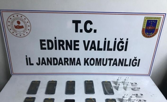 Edirne’de, jandarma ekiplerince durdurulan bir yolcu otobüsünde yapılan aramada piyasa değeri yaklaşık 15 bin TL olan 10 adet kaçak cep telefonu ve telefonların şarj adaptörü ile kabloluları ele geçirildi.
