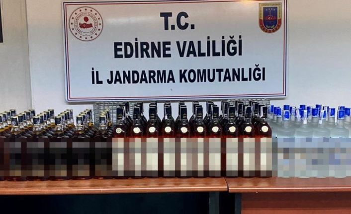 Edirne’de, jandarma ekiplerince durdurulan şüpheli bir araç içerisinde piyasa değerinin 20 bin TL olduğu değerlendirilen 99 şişe alkollü içecek ele geçirildi.