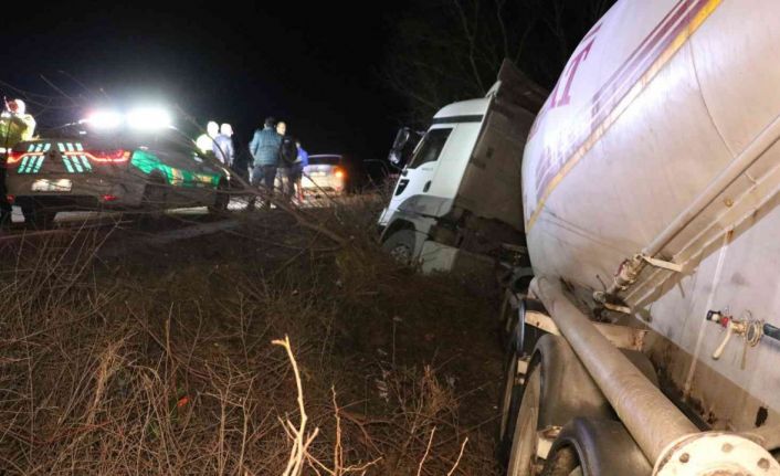 Tır sürücüsü kazadan yara almadan kurtuldu. Yapılan alkolmetre testinde tır sürücüsü 1.79 promil alkolü çıktı.
