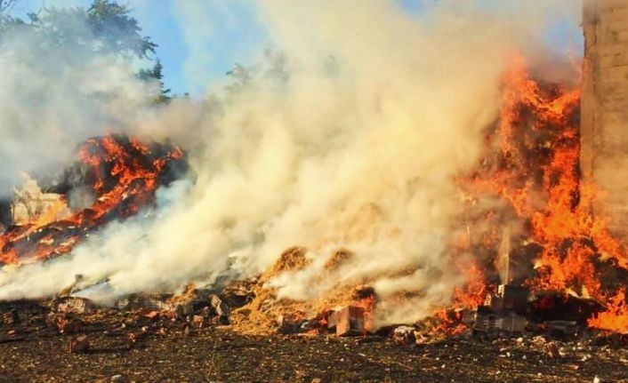 Edirne’nin Uzunköprü ilçesinde çıkan yangında 3 bin 500 saman balyası ve hayvan yemleri yandı.