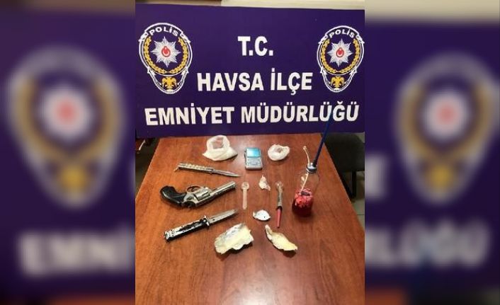 Havsa İlçe Emniyet Müdürlüğü ekipleri, şüphelendikleri 5 kişinin evlerinde ve üstlerinde yaptıkları aramada 81 gram metamfetamin, uyuşturucu içmekte kullanılan 3 düzenek, 1 kuru sıkı tabanca ve 3 sustalı bıçak ele geçirdi. Gözaltına alınan, M.B., M.L., A.K., V.Y., D.Ö. ve C.K., emniyetteki işlemlerinin ardından adliyeye sevk edildi. Savcılıktaki ifadesinin ardından nöbetçi mahkemeye çıkarılan şüpheliler tutuklanarak Edirne Kapalı Cezaevine gönderildi.