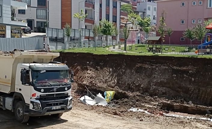 Balıkesir’in Edremit ilçesinde inşaatı süren bir binanın temel kazısı sonrası bitişikte bulunan anaokulunun bahçe duvarı ile kaldırım yolunun duvarı çöktü.