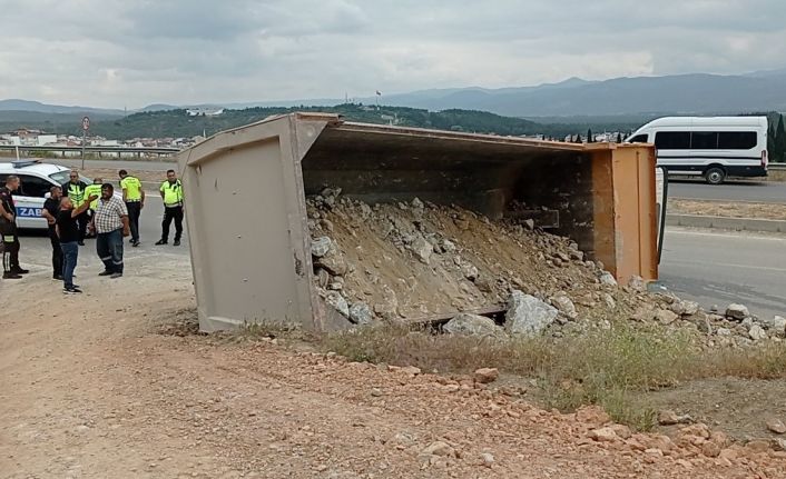 Kaza, Atatürk Mahallesi’nde meydana geldi. Hafriyat taşıyan E.T. idaresindeki 06 FK 6313 plakalı kamyon dönerken arka tekerinin su kanalına düşmesi sonucu devrildi. Şoför ise hafif yaralanırken, 112 Acil Yardım ekiplerinin ilk müdahalesinden sonra hastaneye kaldırıldı. Kazayla ilgili soruşturma sürüyor.