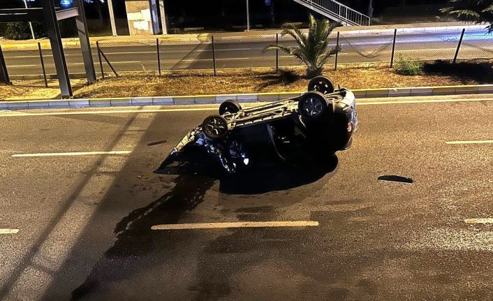 Edremit’te panelvan ile çarpışan otomobil takla attı