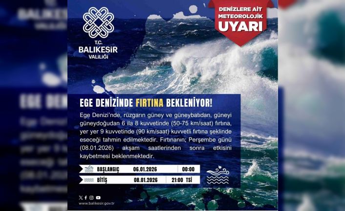 Balıkesir Valiliği, Ege Denizi’nde beklenen fırtına ve kuvvetli fırtınaya karşı uyarıda bulundu.