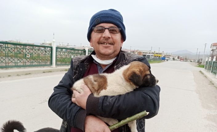 Davultaş, kurtarma operasyonunun ardından yavru köpeği kendi besleği köpeği ile gezdirmeye çıkardı.