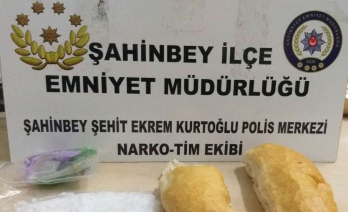 Gaziantep Emniyet Müdürlüğü Şahinbey İlçe Emniyet Müdürlüğü ekipleri, Gümüştekin Mahallesi’nde yapılan çalışmalarda şüphe üzerine bir şahsı durdurdu. Durdurulan şüpheli şahsın elinde bulunan ekmeğin arasına saklanmış şekilde 69 gram metamfetamin uyuşturucu maddesi ele geçirildi.