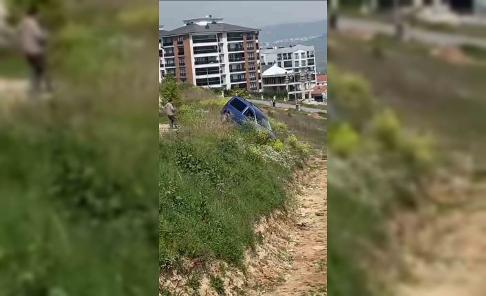 Bursa’da el freni çekilmeyen otomobil, bir süre sonra kendi kendine hareket ederek şarampole uçtu. Yaşanan olayda şans eseri yaralanan olmadı.