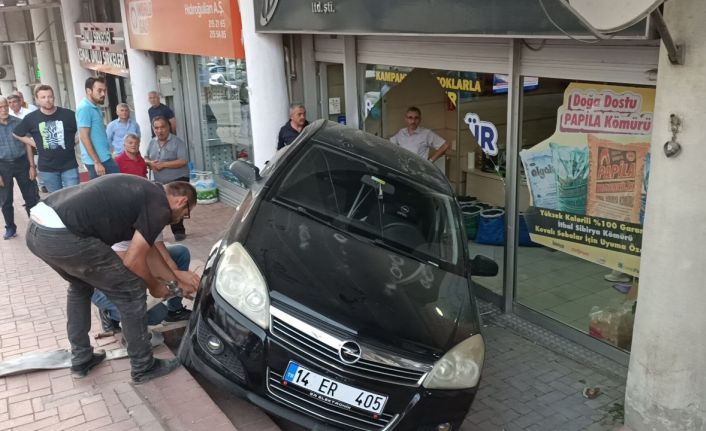Bolu’da el freni çekilmeyen park halindeki bir araç. yokuştan aşağı hareket ederek önce bir otomobile çarptı ardından dükkana daldı.