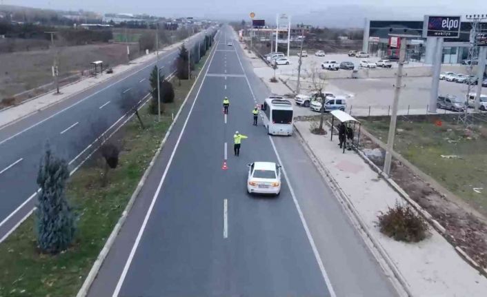 Elazığ’da polis ekipleri dron destekli trafik denetimi yaptı.