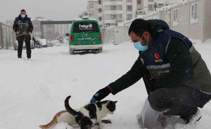 Elazığ’da Hayvan Durum İzleme (HAYDİ) polisleri, soğuk kış koşullarında yiyecek bulmakta zorluk çeken sokak hayvanlarını mama ile besledi.