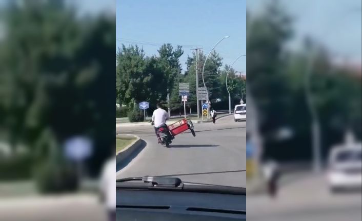 Olay, merkeze bağlı İtfaiye kavşağında meydana geldi. Edinilen bilgiye göre, sepetli motosikleti, trafiği tehlikeye atarak seyir halindeyken sepetin olduğu kısmı kaldırarak ilerlemeye devam etti. O anlar bir başka sürücünün cep telefonu kamerasına yansıdı. Sepetli motosiklet sürücüsü, bir süre sonra gözden kayboldu.