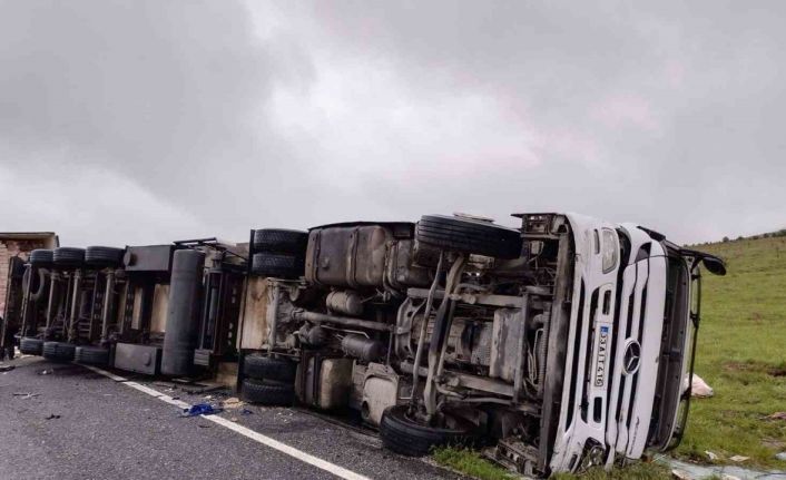Elazığ’da tır yan yattı: 1 yaralı