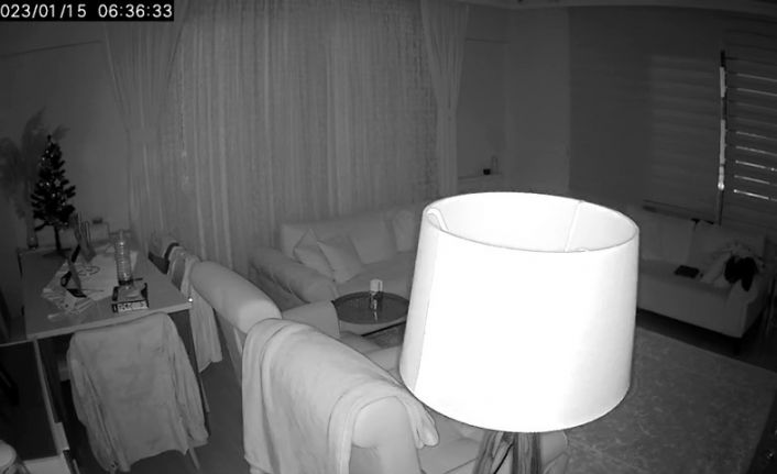 Depremin şiddeti en net olarak bir evin odasında ve bahçesinde bulunan güvenlik kameralarına yansıdı. Deprem anında odada bulunan abajurun sallandığı anlar şiddeti bir kez daha gösterdi.