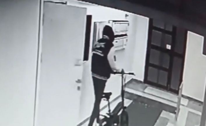 Eskişehir’de bir apartmana girerek elektrikli bisiklet çaldığı iddia edilen şüpheli, güvenlik kameralarına yakalandı.