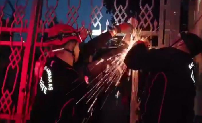Kahramanmaraş’ta demir kapıdan atlarken eli demire saplanan genci itfaiye kurtardı.