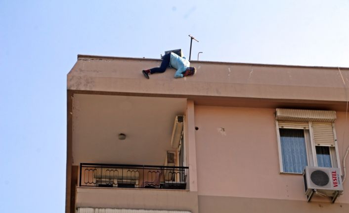 Antalya’da 4 katlı apartmanın çatısına çıkan alkollü adam intihara teşebbüs etti. Zaman zaman çatıda tehlikeli hareketlerde bulunup binaya sucu dahil kimseyi sokmayan adamı polis 7 saatlik uğraşın ardından akşam saatlerinde çatıdan indirdi.