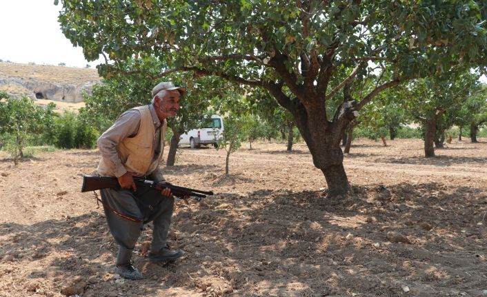Gaziantep’te ‘yeşil altın’ diye tabir edilen fıstığın hasadı başlarken, bekçiler ellerinde tüfekle hırsızlara karşı 24 saat nöbet tutuyor.