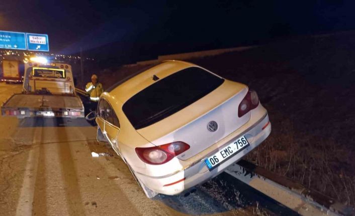 Ankara’nın Elmadağ ilçesi girişinde kontrolden çıkan otomobil yol kenarında bulunan bariyere çıktı.