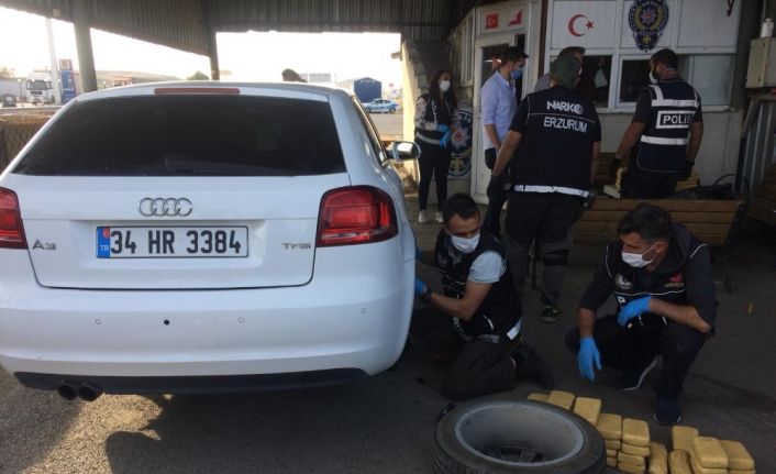 Erzurum’da uygulama noktasında polis ekipleri tarafından durdurulan emekli polisin aracından 61 kilo 750 gram eroin maddesi ele geçirildi.