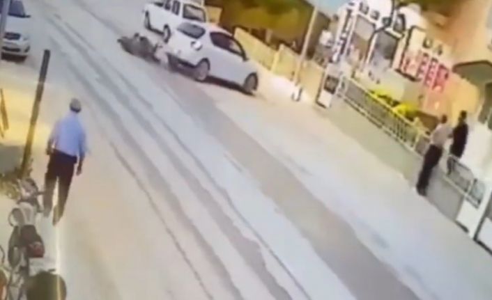 Kütahya’nın Emet ilçesinde motosiklet sürücüsü, aniden önüne çıkan otomobile çarptı. Motosiklet sürücüsünün yaralandığı kaza anı kameralara yansıdı.