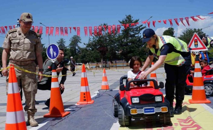 Havuzbaşı Kent Meydanı’nda bulunan mobil eğitim tırına gelen çocuklar, trafik kuralları hakkında çizgi film izledi daha sonra oyuncak arabalara binerek trafikteki ışıkların anlamlarını öğrendi. Jandarma personeli çocuklara araç sürerken nezaret etti, burada da trafikte nasıl hareket etmeleri gerektiği noktasında zaman zaman bilgi verildi.