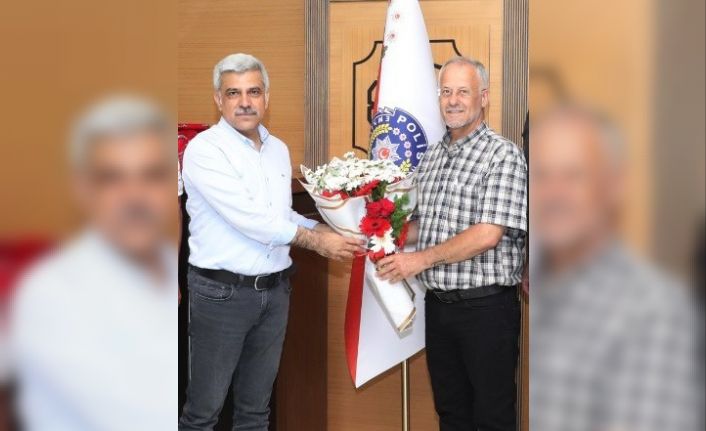 SAMSUN 19 MAYIS GAZETECİLER CEMİYETİ YÖNETİM KURULU BAŞKANI YUSUF ZİYA ÇAKIR, SAMSUN İL EMNİYET MÜDÜRÜ NİHAT ÖZEN'İ ZİYARET EDEREK ÇİÇEK TAKDİM ETTİ.