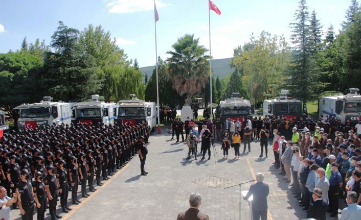 Konuşmaların ardından Muğla’daki orman yangınlarında görev alan Emniyet Genel Müdürlüğü’ne bağlı değişik illerden gelen personel araçlarına ve görevli oldukları TOMA’lara binerek Muğla’dan görev yerlerine uğurlandı.