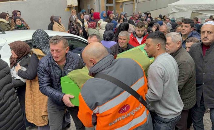 Samsun’da eniştesi tarafından tabancayla öldürülen 2 çocuk annesi kadın için evinin önünde helallik alındığı sırada ailesi ve yakınları gözyaşı döküp ağladı.