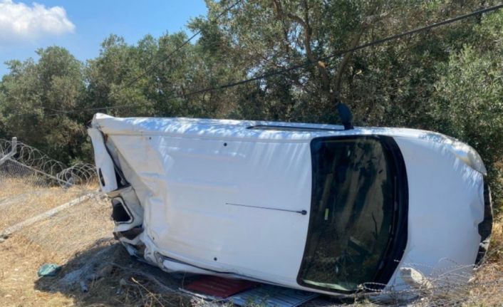 Balıkesir’in Erdek ilçesinde sürücünün kontrolünden çıkan otomobil, yol kenarındaki koruma demirlerine çarpıktan sonra takla atarak ters döndü.