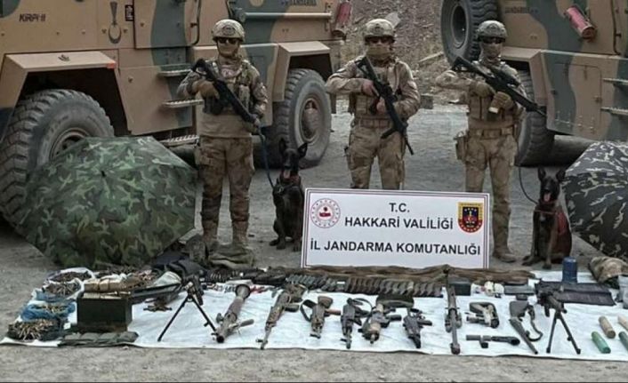 Hakkari’de devam eden ‘Eren Abluka-29’ operasyonunda bölücü terör örgütü mensuplarına ait üç sığınak ve mağarada yüklü miktarda mühimmat ele geçirildi. Hakkari İl Jandarma Komutanlığınca Çukurca ilçesi kırsalındaki mağara ve sığınaklarda 1 adet AT-4 füze, 2 adet Bixi makinalı tüfek, 2 adet keskin nişancı tüfeği, 3 adet Kalaşnikof piyade tüfeği, 1 adet M4 tüfek, 1 adet RPG-7 Roketatar, 1 adet susturuculu tabanca, 1 adet av tüfeği, 37 adet roket mühimmatı, 60 adet el bombası, 1 adet havan mühimmatı, 12 bin adet çeşitli çaplarda mühimmat, 2 kilogram C4 patlayıcı, 17 adet elektrikli uzaktan komuta devresi, 1 adet keskin nişancı tüfeği dürbünü, 20 adet piyade tüfeği şarjörü, 5 adet güneş şarj ünitesi ve paneli, çok miktarda El Yapımı Patlayıcı (EYP) yapımında kullanılan fünye, fitil, pil ve batarya ile muhtelif gıda, yaşam, giyim, tıbbi ve inşaat malzemeleri ele geçirildi. Bakanlık tarafından ele geçirilen malzemelerin emniyetli bir şekilde imha edildiği ve bölgede operasyonların devam ettiği belirtildi.