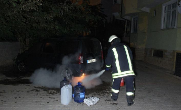 Karaman’da sahibi tarafından oturduğu apartmanın otoparkına park edilen araç, gece yarısı bir anda alev alarak yanmaya başladı. Aracının yandığını haber alan sahibi ise itfaiye gelinceye kadar su dolu bidonlarla alevlerin tamamen otomobili sarmasına engel oldu.