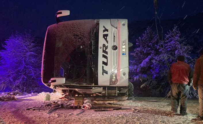 Erzincan’ın Refahiye ilçesinde kar yağışı dolayısıyla kayganlaşan yolda şarampole devrilen yolcu otobüsünde bulunan 2 kişi hayatını kaybetti, 21 yolcu yaralandı.