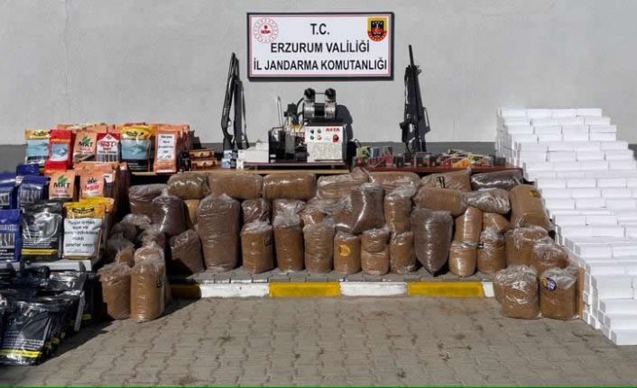 Erzurum Jandarması tarafından yapılan operasyonda Karaçoban ilçesinde kaçakçılık yapan 6 kişi yakalandı. Kaçakçıların ikametlerinde toplam 800 kilo tütün, 187 bin 500 adet boş makaron, bin 500 adet doldurulmuş makaron, 26 kilogram nargile tütünü, 1 adet otomatik sigara doldurma makinesi ve 2 adet ruhsatsız av tüfeği ele geçirildi.