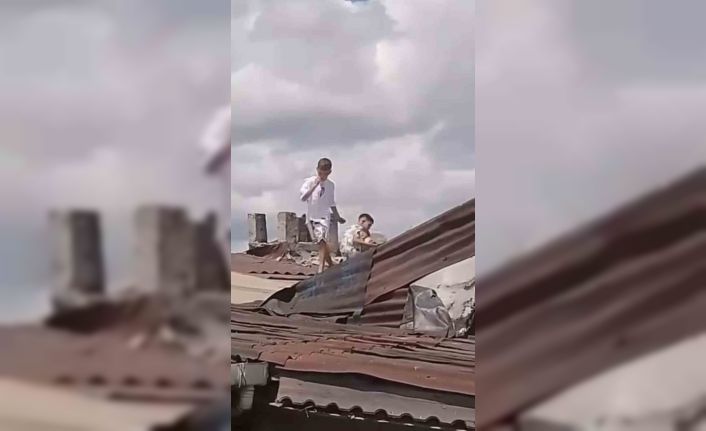 Görüntüler geçtiğimiz Perşembe günü Esenler’de kaydedildi. Oyun oynamak için bir binanın çatısına çıkan çocuklar, ellerinde bulunan taşları aşağı atarken görüntülendi. Çocuklar bir süre sonra çatının ucuna doğru sarktı. Çocukları gören vatandaşlar korku dolu anlar yaşadı. Canlarını tehlikeye atan çocukların o anları cep telefonu kamerasıyla görüntülendi.
