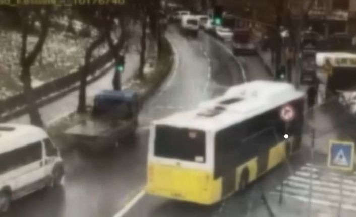 Esenler’de gaz pedalı takılı kaldığı iddia edilen ve içinde yolcuların bulunduğu İETT otobüsünün otoparka daldığı anları güvenlik kamerası görüntüleri ortaya çıktı. Görüntülerde kaldırımda yürüyen bir kişinin kaçtığı ve aracın altında kalmaktan son anda kurtulduğu görülüyor.