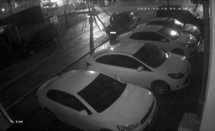 Yaşanan hırsızlık anı apartmanın güvenlik kamerası tarafından saniye saniye kaydedildi. Görüntülerde iki hırsızın sokakta aracın yanına gelerek çevreyi kontrol ettiği ardından da bir kişinin aracın direksiyonuna oturduğu diğerinin ise aracı iterek götürdüğü görülüyor. Polis her yerde kaçan şüphelileri arıyor.